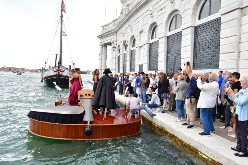 FOTO + VIDEO | Momente inedite în Veneția. Omagiu adus victimelor Covid pe o barcă imensă în formă de vioară
