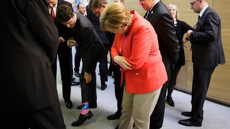 El a ținut să-și etaleze șosetele în fața cancelarului german, Angela Merkel, care a și postat o poză cu acestea pe pagina sa oficială de Instagram.