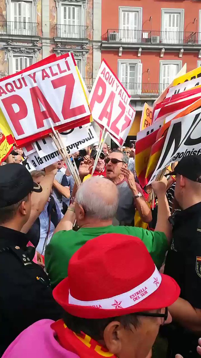 Referendum Catalonia. În Madrid, în Piaţa Mayor, a avut loc o altercaţie între cei care susţin unitatea Spaniei, şi un bărbat care a cerut dreptul la libertate de expresie.