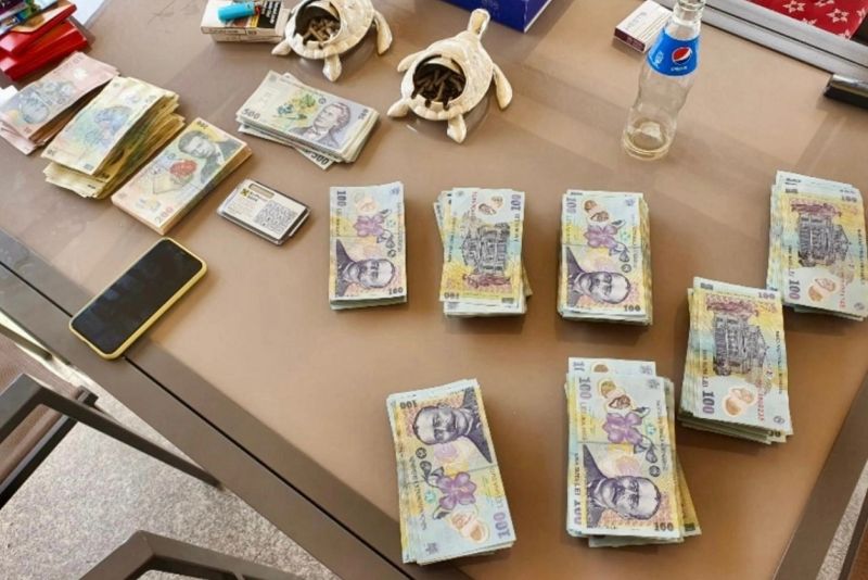 “La orele 11:42:14 AM(UTC+0), VASILE GEORGIANA-RALUCA i-a transmis soțului său o fotografie cu 11 teancuri de bani, în bancnote de câte 10 lei, 50 lei, 100 lei, 200 lei și 500 lei așezați pe un birou”.