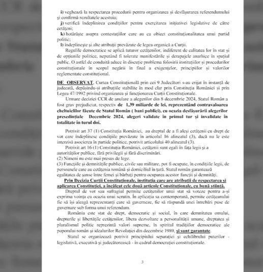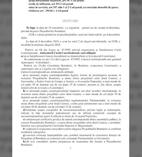 Si atunci, ca un bun cetatean roman, am considerat ca trebuie sa actionez in constinta mea si am formulat aceasta plangere penala impotriva dl. Klaus Iohannis, impotriva dl. Marcel Ciolacu si a tuturor membrilor CCR pentru savarsirea infractiunilor de grup infractional organizat, trafic de influenta, abuz in serviciu si tradare.