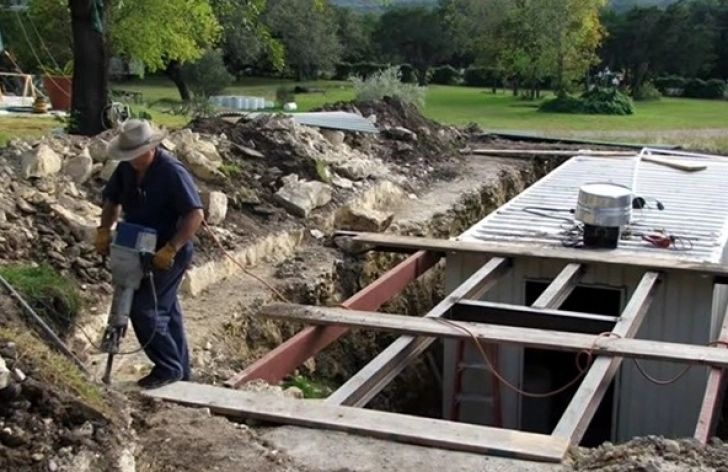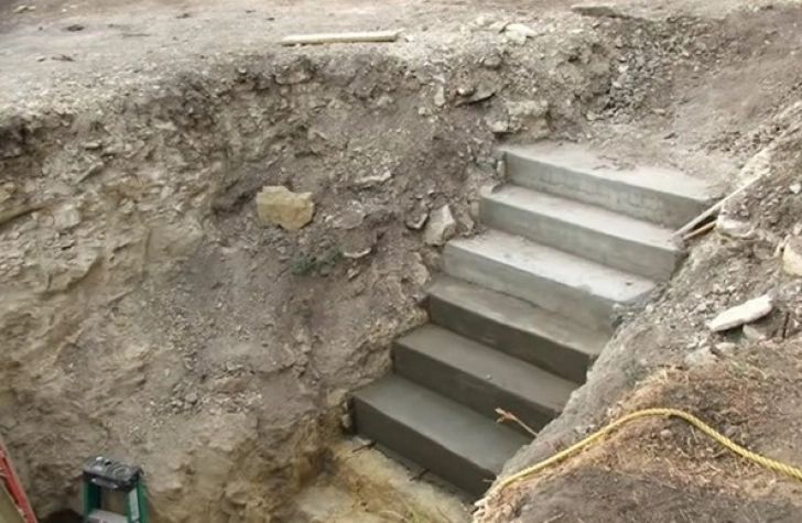 În dreptul scărilor a construit o "fereastră" din dale de beton. Au urmat gurile de aerisire, tevile şi a "sigilat" cu o placă de beton. Câteva zile mai târziu, a îmbrăcat totul cu pământ.