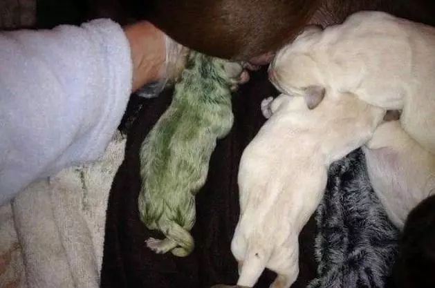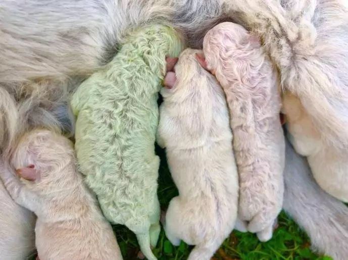 Adorabil! Un cățeluș cu blană VERDE s-a născut în Sardinia. Cum arată frații lui