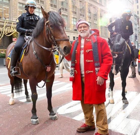 În imaginile care au devenit rapid virale, Schwarzenegger a fost văzut purtând un pulover cu motive festive și un palton, completându-și look-ul cu părul și barba albă. Schimbarea l-a transformat radical, iar un utilizator de pe platforma X (fosta Twitter) a glumit: „Parcă a îmbătrânit 200 de ani în doar două luni!”. Actorul, în vârstă de 77 de ani, a atras privirile trecătorilor, fiind însoțit de cinci bodyguarzi pe străzile aglomerate ale metropolei.