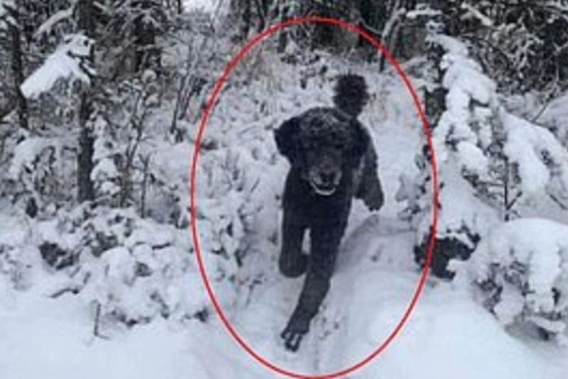 În fotografia postată pe internet, internauții au descoperit două imagini: fie un câine care aleargă, fie un bărbat îmbrăcat cu un hanorac pe care este imprimat un cățel.