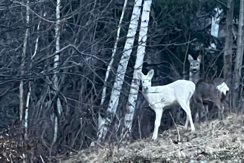 Jandarmii de la Postul Montan Bran-Moieciu au fotografiat, pe traseul din zona Valea Porţii din Bran, un exemplar rar de căprioară albă.