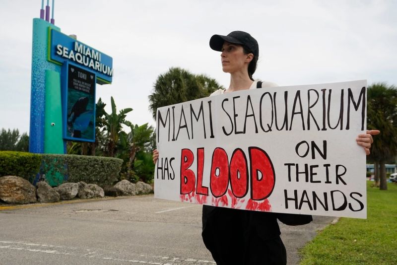 "Miami Seaquarium are mâinile mânjite de sânge" - protest față de condițiile în care era ținută orca (Profimedia).