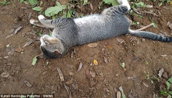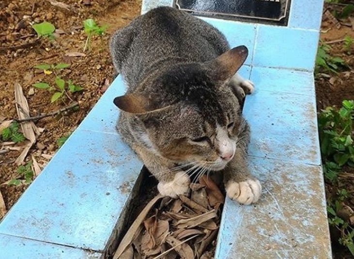 Keli Keningau Prayitno, un tânăr de 28 de ani, a încercat în repetate rânduri să o ia acasă, însă, a doua zi, pisicuța fuge din nou la cimitir, unde se așază pe mormânt.