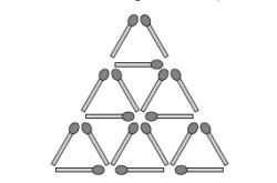 În figura alăturată, care a fost realizată din 18 beţe de chibrit, putem identifica 13 triunghiuri echilaterale (mai mari sau mai mici).