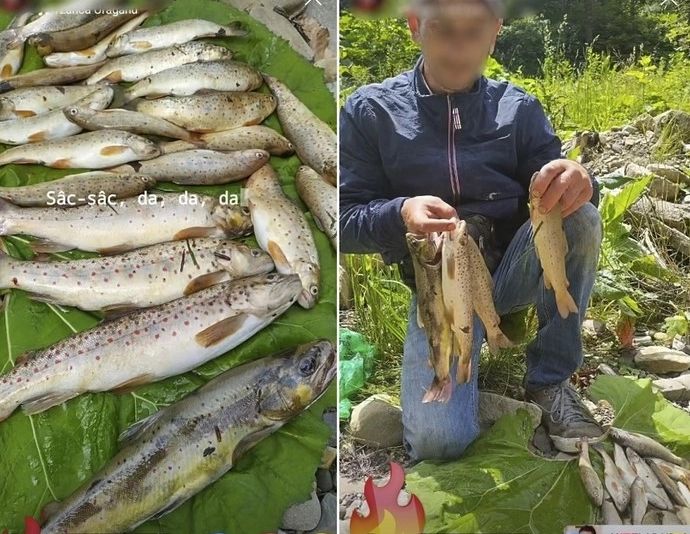 „Imaginile din această postare sunt preluate în urma unei sesizări de pe profilul de facebook a unui „pescar sportiv”. Pescar o fi dar sportiv nici pe departe, având în vedere că a depășit numărul maxim de exemplare de salmonide pescuite (23 exemplare față de 10 exemplare/zi cât este admis). Și ca să fie sportiv până la capăt ne-a comunicat că nu deține nici permis de pescuit. Pentru cele menționate anterior comisarii de mediu i-au aplicat o amendă în valoare de 600 lei cât și interzicerea pescuitului sportiv/recreativ al oricăror specii de pești și a altor viețuitoare acvatice fără permis și sub dimensiunile minim legale sau peste numărul maxim admis” a transmis Garda de Mediu Bacau.