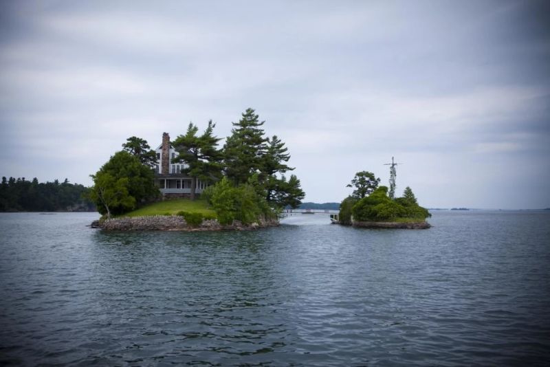 Aceasta este cunoscută sub numele de Insula Just Room Enough, sau Insula Hub, și face parte din arhipelagul Thousand Islands, o regiune renumită pentru peisajele sale pitorești.