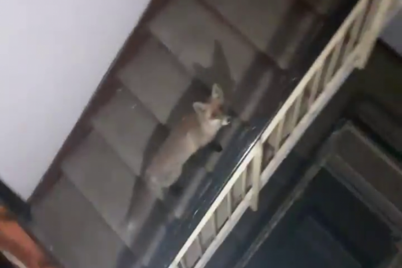 O vulpe a adormit pe scările unui bloc din localitatea Berca, din Buzău. Aceasta a fost surprinsă de un tânăr care a filmat animalul cum urcă scările imobilului până la etajele superioare și a postat video-ul pe rețelele de socializare.