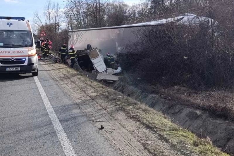 Şoferul autocamionului a primit îngrijiri medicale la faţa locului şi a fost transportat la spital de către echipajul Serviciului Judeţean de Ambulanţă.