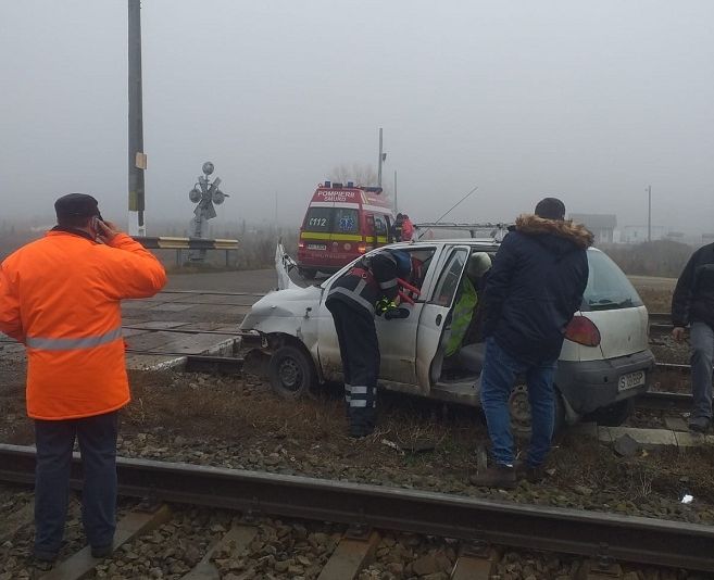 Un autoturism înmatriculat în județul Iași a fost lovit de un tren la o trecere de nivel peste calea ferată din localitatea Rebricea, județul Vaslui.