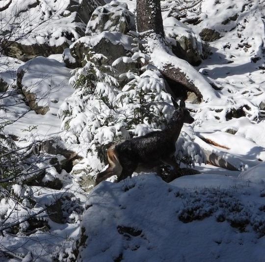 Capre negre și urs, surprinse pe culmile înzăpezite ale Masivului Giumalău. Imagini spectaculoase publicate de Romsilva