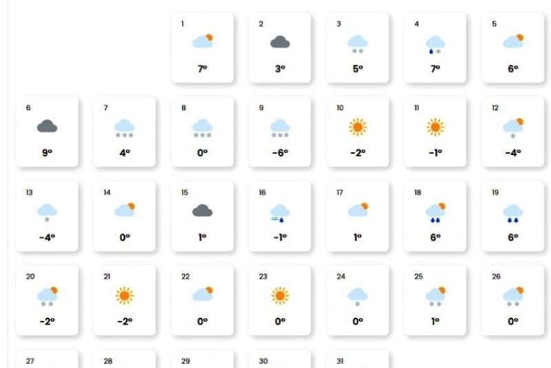 Potrivit prognozei, ianuarie va aduce 17 zile de ninsoare, ceea ce înseamnă că aproape jumătate din lună va fi acoperită de precipitații. Viscolul și cerul înnorat vor fi fenomene frecvente, iar soarele va apărea doar sporadic. Zăpada abundentă este așteptată să creeze condiții excelente pentru sporturile de iarnă și distracțiile specifice sezonului.