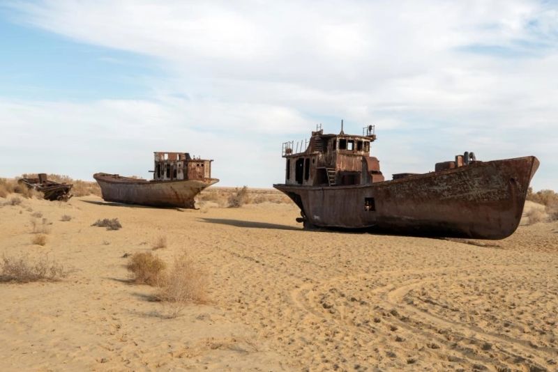 Marea Aral, odinioară al patrulea cel mai mare lac din lume, s-a transformat aproape complet într-un deșert. În prezent, doar aproximativ 8.000 de kilometri pătrați mai sunt acoperiți de apă, restul suprafeței devenind ceea ce este cunoscut acum drept Deșertul Aralkum. Această transformare dramatică reprezintă unul dintre cele mai mari dezastre ecologice ale lumii.