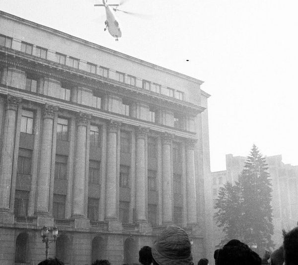 In a doua imagine, surprinsa pe 22 decembrie 1989, la ora 12:09, elicopterul prezidential decoleaza de pe sediul CC al PCR