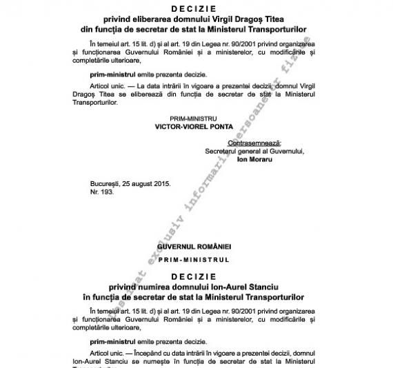 Ion Aurel Stanciu a plecat de la șefia ROMATSA, acesta fiind numit secretar de stat în Ministerul Transporturilor. Totodată, Virgil Dragoș Titea a fost eliberat din funcția de secretar de stat în Ministerul Transporturilor, în locul său fiind numit Marius Humelnicu. Deciziile au fost publicate în Monitorul Oficial.