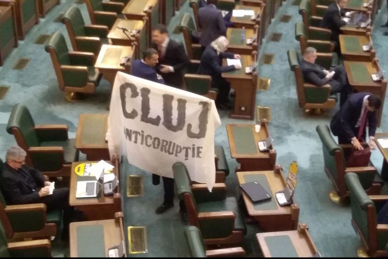 Asta după ce ședința Senatului a început cu întârziere, la ora 16.20, iar USR a cerut, de la plen, scoaterea legilor Justiției de pe ordinea de zi, dar propunerea a fost respinsă. Pe de altă parte, senatorii USR au venit pregătiți cu bannere și stickere ”Toți pentru Justiție”.