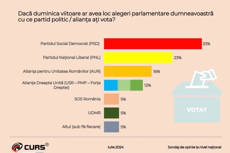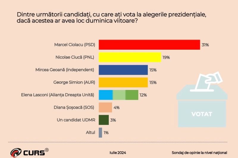 Un sondaj realizat de CURS în perioada 18 – 26 iulie 2024 arată intenția de vot a românilor pentru viitorul președinte.