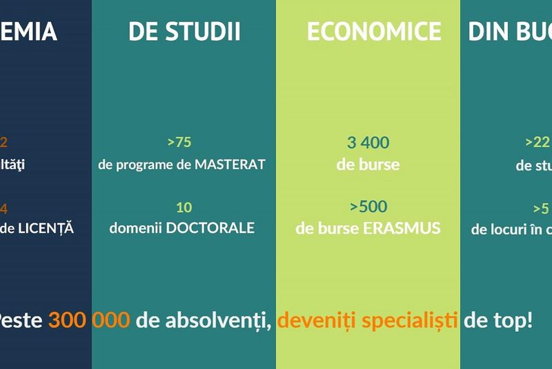 Academia de Studii Economice din București, liderul învățământului superior economic și de administrație publică din România și Europa de Sud-Est, universitatea cu cea mai bună inserție a absolvenților pe piața muncii autohtone, scoate la concurs pentru admiterea la programele universitare de licenţă peste 7 200 de locuri, după cum urmează: