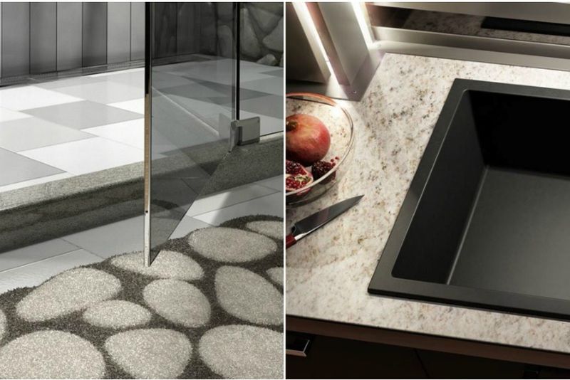 De la Ambient Expo 2018 nu lipsesc produsele și accesoriile destinate bucătăriilor: chiuvete marmură compozit și granit, robineți și praguri compozite pentru spațiul de duș, în diverse combinații, dimensiuni, forme și culori.