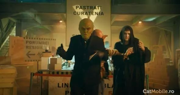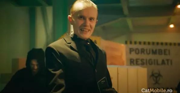 Irinel în înfățișarea sa reptiliană, scăpându-și telefonul fără husă