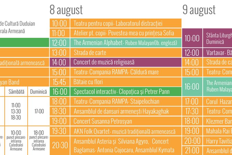 Mai multe detalii pe pagina de Facebook https://www.facebook.com/FestivalulStradaArmeneasca sau pe site www.stradaarmeneasca.ro
