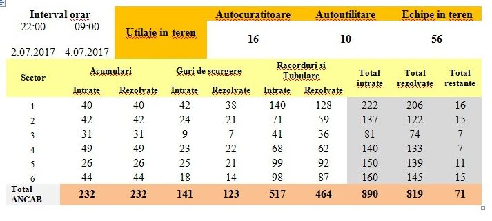 Apa Nova – Compania de Ape Bucureşti a rezolvat peste 800 de probleme semnalate în decurs de aproximativ 20 de ore, acţionând cu toate utilajele şi echipele operaţionale. TOATE pasajele aflate în administrarea ANCAB au fost funcţionale şi s-a reuşit evitarea inundaţiilor.