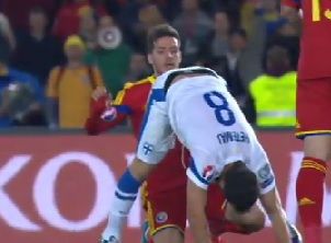 Min. 21 - Chipciu este cel mai faultat jucător al României