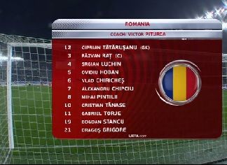 ROMANIA: Tătăruşanu - Luchin, Grigore, Chiricheş, Raţ - Prepeliţă, Pintilii - Torje, Sânmărtean, Tănase - Stancu;