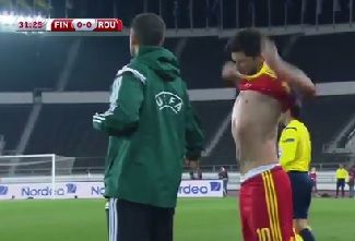 Min. 32 - Tănase şi-a schimbat tricoul de joc, pentru că echipamentul precedent de rupsese într-un duel
