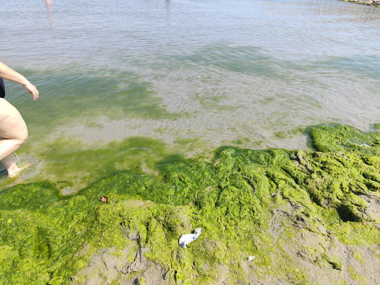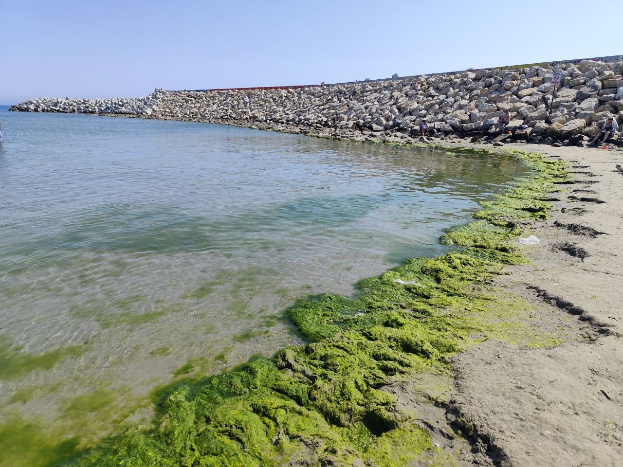 Deși temperatura apei este perfectă pentru înot – 22,8°C, iar aerul a atins azi 27°C, atmosfera de vacanță este umbrită de aspectul neîngrijit și mirosul pestilențial al algelor, scrie Ziarul Amprenta. Apa este tulbure, plină de fâșii verzi, iar pe nisip s-au format grămezi înnegrite de alge și scoici, lăsate de valuri.