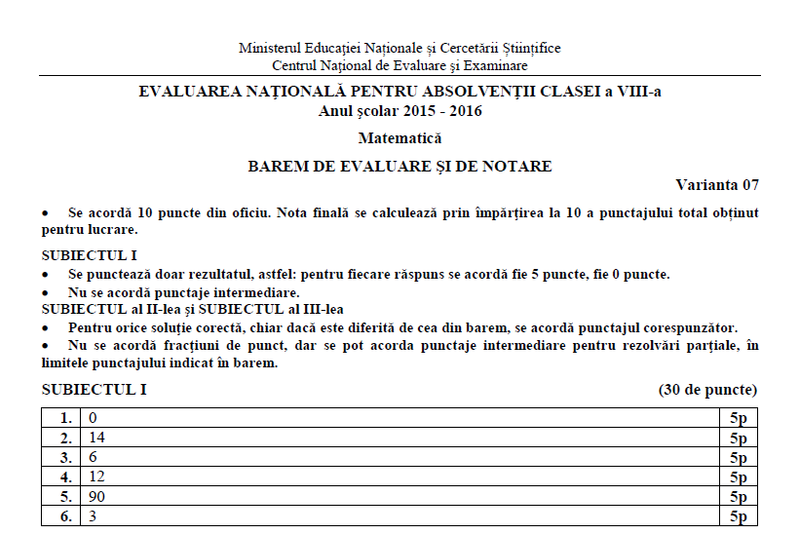 Rezolvări matematică Evaluare Nationala 2016. Rezolvări corecte matematică EDU. RO