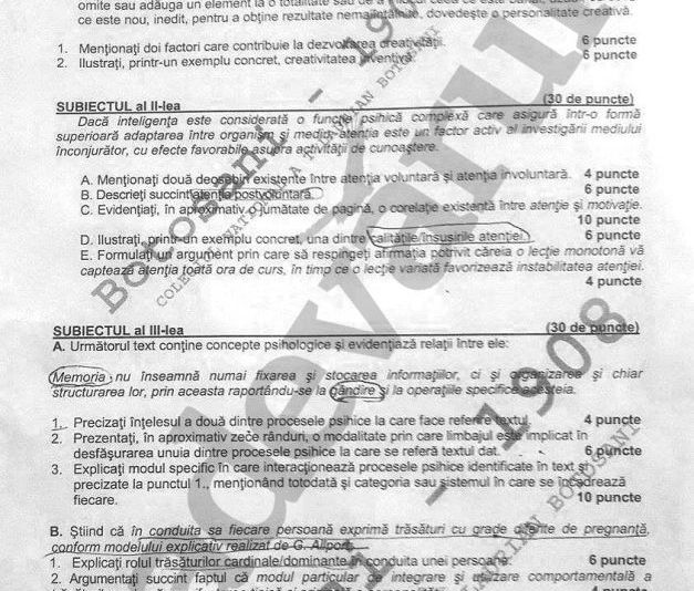 REZULTATE BAC 2014 EDU.RO. SUBIECTE PSIHOLOGIE şi BAREM EDU.RO