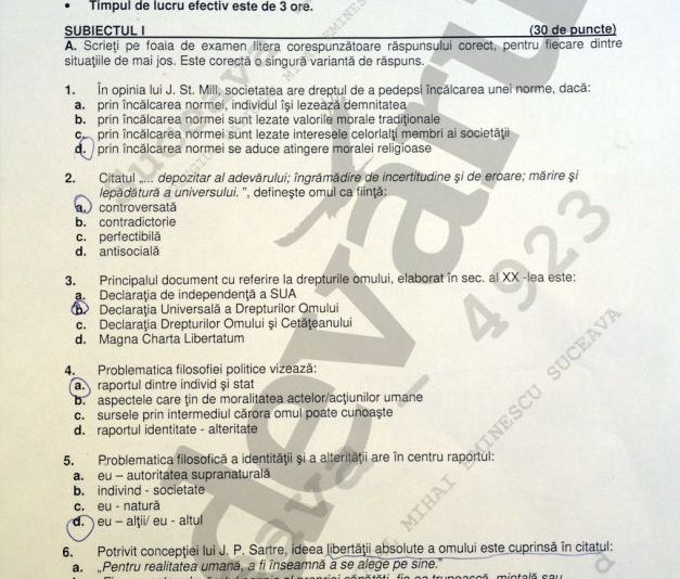 REZULTATE BAC 2014 EDU.RO. SUBIECTE FILOSOFIE şi BAREM EDU.RO