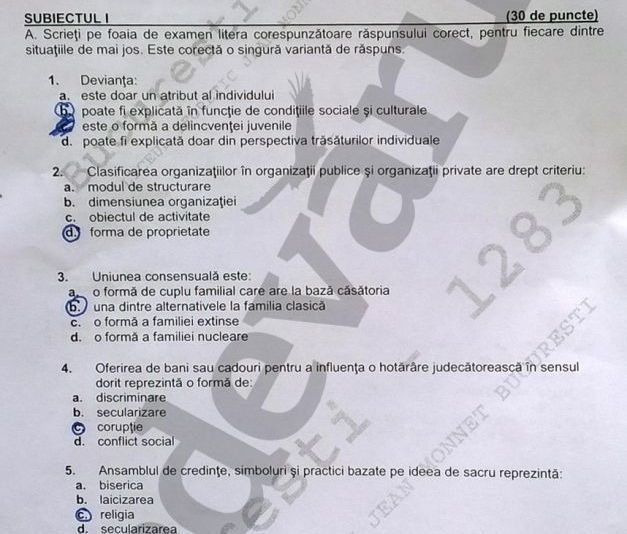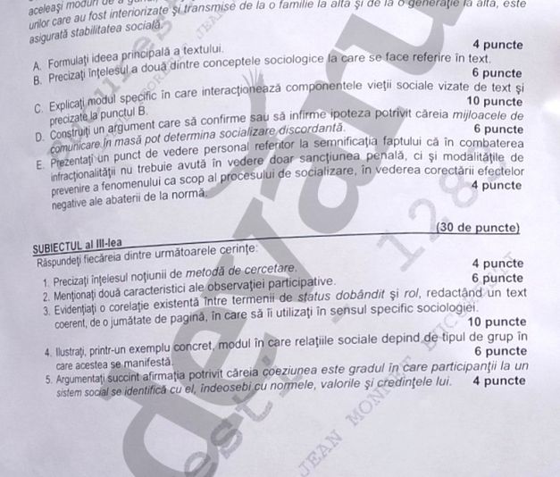 REZULTATE BAC 2014 EDU.RO. SUBIECTE SOCIOLOGIE şi BAREM EDU.RO