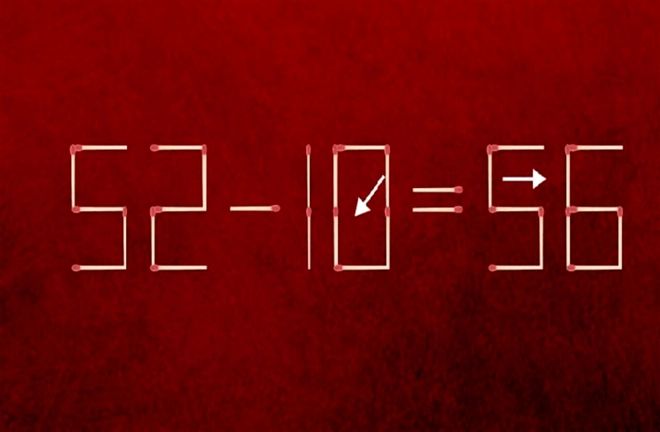 Provocare IQ pentru genii: Corectează 52 – 10 = 56 mutând două bețe de chibrit