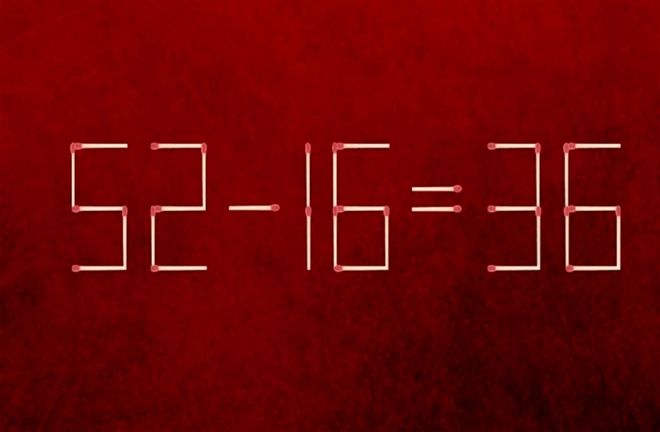 Mută un băț de chibrit de la cifra „56” pentru a obține „36”.