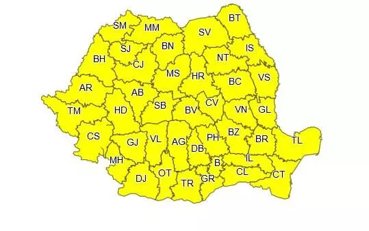 Administrația Națională de meteorologie a emis o avertizare meteorologică cod galben de vreme rea, valabilă în toată țara.