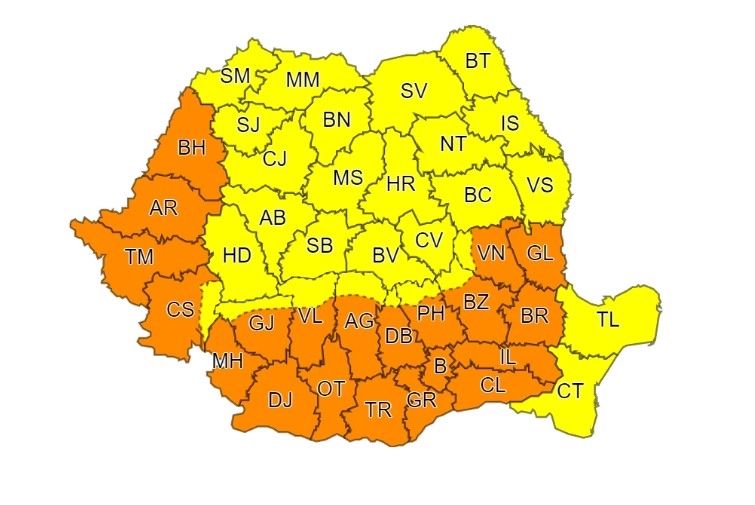 AVERTIZARE METEOROLOGICĂ - COD GALBEN DE CANICULĂ