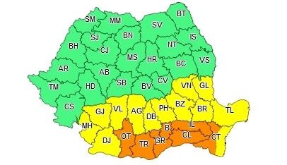 Sâmbătă, în județele Olt, Teleorman, Giurgiu, Ilfov, Călărași, Ialomița, Constanța și în municipiul București se vor înregistra temperaturi maxime de 38...39 de grade, disconfortul termic va fi accentuat, iar indicele temperatură-umezeală (ITU) va depăși pragul critic de 80 de unități.