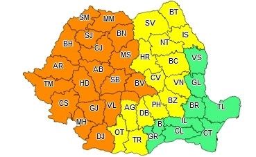 AVERTIZARE METEOROLOGICĂ - COD GALBEN de instabilitate atmosferică