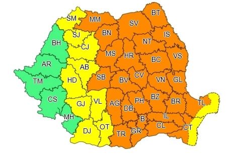 Administrația Națională de Meteorologie a emis noi avertizări meteo cod portocaliu și cod galben de fenomene meteo extreme. Până mâine dimineață, în cea mai mare parte a țării sunt ateptate vijelii și ploi abundente.
