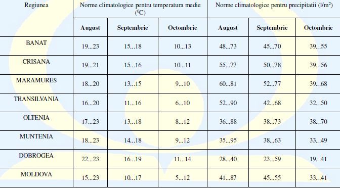 Temperaturile medii lunare se vor situa peste mediile multianuale in cea mai mare parte a teritoriului, abaterile termice cele mai mari fiind posibile indeosebi in regiunile sudice, sud-estice si vestice.